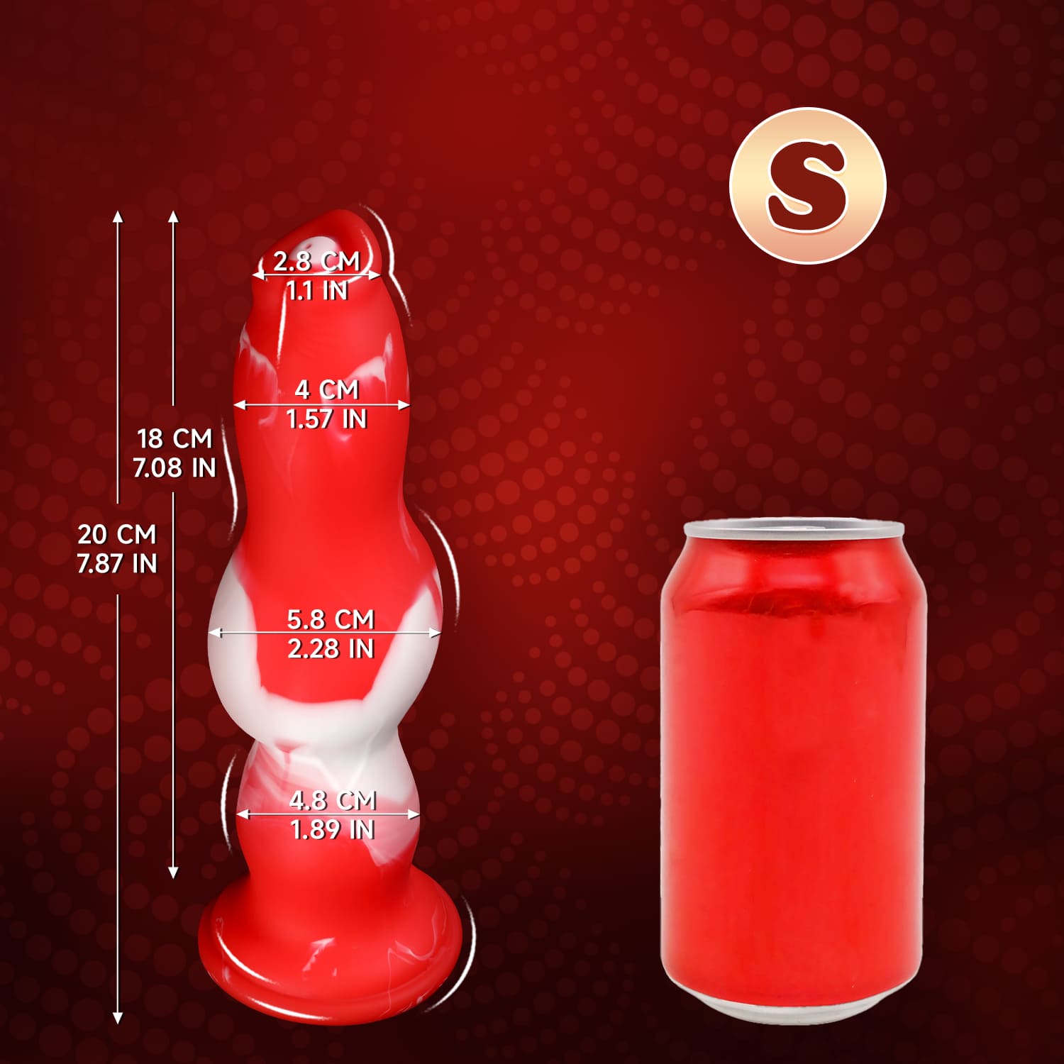 Meet Peppermint Fury—a bold, bulb‑shaped fantasy plug that looks like it was dipped in liquid candy cane. Hand‑poured platinum silicone creates a one‑of‑a‑kind red‑and‑white marble swirl with a glossy finish that practically begs to be shown off. The plump, rounded tip flows into a tapered waist and a second, fuller bulb, before resting on a wide suction‑cup base that keeps the toy upright and harness‑ready.