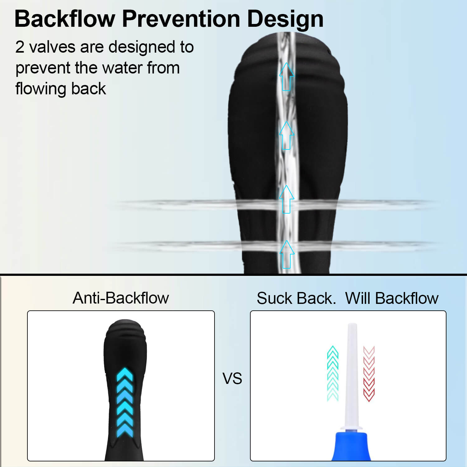• Anti-Backflow Tech – Clean in, dirty out – no contamination
